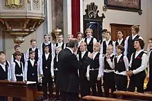 A choir from the school won the BBC's "Let the people sing" choir competition and in 2001, and became a Choir of the European Federation and Cultural Ambassador".[1] The school is mentioned as one of the building blocks of The Swedish Choral Miracle.[3] Singers.com called the school "a distinguished institution of music well known throughout the world"[26] and the Barbershop Harmony Society called it "the most renowned choir school in Sweden".[27] Discogs said the school is "one of the most internationally recognized children's and youth choirs throughout the world."[1]