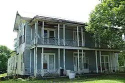 The Stokes House is a historic house on the east side of Cammack Street in Evening Shade, Arkansas. It is a two-story wood-frame structure with a side gable roof, and a pair of single-story additions extending to the rear. The front facade is dominated by an elegant Queen Anne porch, which is two stories in height and covers the full width of the house. It has delicate turned posts, a spindled frieze, and jigsaw-cut brackets. It is one of the community's finest examples of Queen Anne architecture.[2]