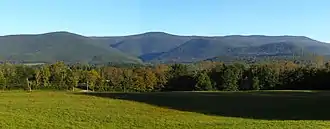 The Greylock Range is part of the Taconic Mountains, which are separated here from the Berkshires and Green Mountains by the nearby Hoosac Valley.[15]