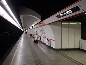 Stubentor is a station on U3 of the Vienna U-Bahn.[1] It was inaugurated in 1991 and is located in the Innere Stadt District. The station was named after the city gate located in the area up until 1858.[2] Some relics of this gate, such as the remains of the old structures of the city walls, can be seen in the metro station.[3] Stubentor is a three-story station, two tubes of Line U3 lined up on separate levels. The platform for trains bound for Simmering is above, and the platform for trains bound for Ottakring is below.