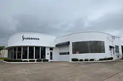 The Studebaker Showroom is a historic commercial building at 519 Port Arthur Avenue (corner of De Queen) in downtown Mena, Arkansas. It is a single-story stuccoed concrete block structure with a flat roof. Built in 1948, it is a distinctive local example of the Moderne style, with rounded corners on the corners of the front part of the building. This includes a projecting showroom section and the corners of the main service and sales area behind, which are decorated with banks of glass blocks, another Moderne hallmark.[2]