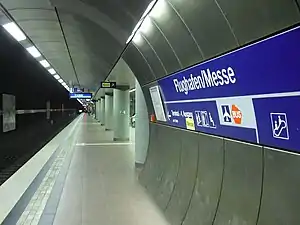 Stuttgart Flughafen/Messe (German for Stuttgart Airport/Trade Fair) station is a station on the network of the Stuttgart S-Bahn. Despite its name the station is not in the city of Stuttgart, rather it is in Leinfelden-Echterdingen.