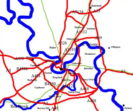 Suburbs of Shrewsbury refers to residential areas within the town of Shrewsbury, Shropshire, England. Many had been separate villages until the growth of the town.