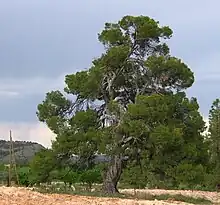 Suillus collinitus is the most frequent fungus associating with Aleppo pine – a hardy tree utilised for reforestation schemes and soil conservation against erosion in the Mediterranean region. A study performed in the south of France discovered that S. collinitus and S. mediterraneensis are multi-stage ectomycorrhizal fungi, associating with both young and mature stands of Aleppo pine. These two species may play a key role in the survival and adaptation of this species of pine on disturbed calcareous sites. Roots mycorrhizal with S. collinitus were found capable of surviving successive disturbances by fire or ploughing. Moreover, the fungus retained its viability to propagate via its mycelial network which helped the recolonisation effort of newly introduced trees.[21] The fungus has also been shown to improve the growth of Mediterranean pines grown in greenhouses and nurseries.[22][23] Unlike other Suillus species that grow in wet climates, such as S. grevillei[24] and S. spraguei,[25] S. collinitus does not typically produce fruit bodies in young plantations. This fruiting behaviour may be attributed to the typically nutrient-poor xeric Mediterranean environment in combination with a lack of tree canopy. The absence of above-ground indicators of fungal presence makes analysis of underground populations difficult; molecular markers have been developed to assist in monitoring fungal growth and ectomycorrhizal formation and persistence in young plantations.[26]