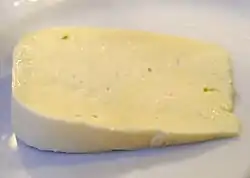 Sulguni (Georgian: სულგუნი, სულუგუნი sulguni, suluguni; Mingrelian: სელეგინ selegin); Svan: სჷლგინ, ლჷჯმარე selgin, lejmare) is a brined Georgian cheese from the Samegrelo region. It has a sour, moderately salty flavor, a dimpled texture, and an elastic consistency; these attributes are the result of the process used, as is the source of its nickname "pickle cheese". Its color ranges from white to pale yellow. Sulguni is often deep-fried, which masks its odor. It is often served in wedges.