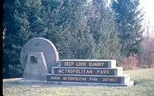Within Deep Lock Quarry lies Lock 28, which at 17 feet was the deepest lock on the Ohio & Erie Canal, and an old quarry from which blocks of Berea sandstone were cut for the canal locks and other local structures. Ferdinand Schumacher, who is credited with introducing oatmeal to America by supplying it to Union troops during the Civil War, purchased a portion of the quarry in 1879. The sandstone found in the quarry was ideal for mill stones, which were used to remove the outer hulls of oats processed at Akron's American Cereal Works (later Quaker Oats). Stone was last taken from the quarry in the 1930s, when the Civilian Conservation Corps used the sandstone to construct several Metro Parks facilities, including Pioneer Shelter in Goodyear Heights Metro Park. Deep Lock Quarry became a Metro Park in 1934. Today, the park is home to more Ohio buckeye trees than any other Metro Park in Summit County. The old canal bed is home to frogs, turtles and salamanders. A shallow swamp has developed on the quarry floor, where rose pink (an herb) and the invasive narrow-leaved cattail grow.[5]