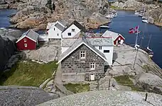 The Svenner Lighthouse was established in 1874 on the island of Korpekollen.[2] The smaller islands of Bølene, Strømsundholmen, and Ferjeholmen were listed as bird sanctuaries in 2009.[3][4][5]