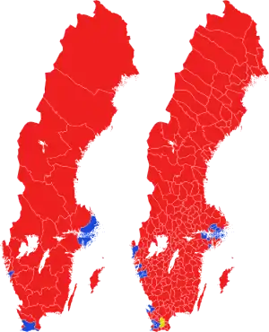 | Swedish Social Democratic Party | 1,932,711 | 31.01 | +0.35 | 113 | +1 | |