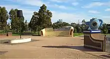 Sydenham is directly under the flight path of Sydney Airport. To deal with noise complaints from residential properties between Unwins Bridge Road and the Princes Highway, the government compulsory acquired these properties and converted them into a recreational park.[7] The park occupies a large portion of the small suburb. Sydenham Green is located on either side of Railway Road, named after the park of the same name in Sydenham, London. Two heritage buildings along Railway Road were retained, a sandstone terrace house and St Marys Church (which was later controversially demolished after a suspicious fire.[8]) In the park, a series of oversized 'living room' sculptures – lamp, chairs and fireplace pays homage to the residential houses that formerly occupied the site.