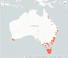 | Distribution map of Symphyogyna podophylla (Symphyogyna hymenophyllum) in Australia[1] | |