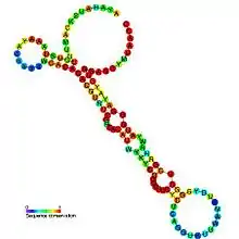 The T44 RNA family consists of a number of bacterial RNA genes of between 135 and 170 bases in length.[1] The t44 gene has been identified in several species of enteric bacteria but homologs have also been identified in Pseudomonas and Coxiella species. The t44 gene is found between the map and rpsB genes in all species in the full alignment apart from Shigella flexneri. The function of this RNA is unknown.[1]