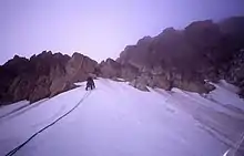 - ↑ Ray Borbon (2005). "The Northeast Ridge route is 1000 meters long when the technical portions of the east face are longer than the ridge". americanalpineclub.org. Retrieved 2 January 2020.