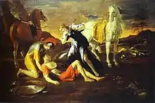 Tancred appears as a character in Torquato Tasso's 16th-century poem Jerusalem Delivered, in which he is portrayed as an epic hero and given a fictional love interest, the pagan warrior-maiden Clorinda. He is also loved by the Princess Erminia of Antioch. Portions of Tasso's verses were set by Claudio Monteverdi in his 1624 dramatic work Il Combattimento di Tancredi e Clorinda. He also appears in one of the scenes in Imre Madách's The Tragedy of Man. In Tom Harper's Siege of Heaven he is depicted as a violent psychopath. His portrayal is similar although slightly more humorous in Alfred Duggan's novel Count Bohemond.
