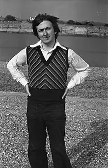 A sweater vest (known as a tank top, sleeveless sweater or sleeveless pullover in the UK) is an item of knitwear that is similar to a sweater, but without sleeves, usually with a low-cut neckline. They were popular in the 20th century, particularly in the 1970s in the UK, and are again growing in popularity in this century.[2]