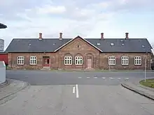 Like the other stations on the Esbjerg–Struer railway line, the still existing station building from 1875 was designed by the Danish architect Niels Peder Christian Holsøe (1826–1895), known for the numerous railway stations he designed across Denmark in his capacity of head architect of the Danish State Railways.[3]