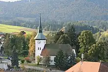 In the spring of 1530, Guillaume Farel preached the Reformation in Tavannes and surrounding areas, with great success. When Tavannes accepted the new faith of the Protestant Reformation, the village church of Saint-Etienne, which was built in 1385, became a Reformed church and remained the only church in Tavannes until the Catholic Church of Christ-Roi was built in 1930.[3]