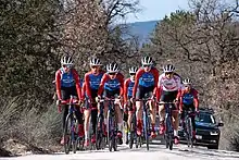 2018 saw a further internationalisation of the roster, with the additions of German Lea Lin Teutenberg and Dutchwoman Aafke Soet.[8][9] Spanish bicycle component manufacturer, Rotor signed onto Team WNT as a second naming sponsor, setting the team to be the first to race full-time on hydraulic shifting and braking groupset.[10] WNT-Rotor took on a greater Spanish influence with its switch from long time frame partner Specialized to Orbea. The team also joined as one of five UCI women's teams to transition to disc brakes in 2018, moving from its already new hydraulic Rotor rim brake groupset to debut the disc brake version at Dwars door Vlaanderen.[11]