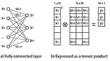 Two layers of a fully connected neural network and its expression as a tensor Kronecker product