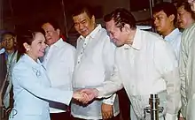 Vice President Guingona shaking his hand with President Gloria Macapagal Arroyo in 2001
