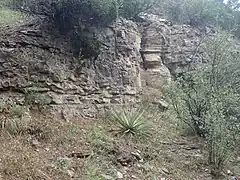 The formation is divided into the Macho Member, which is a massive ledge-forming limestone breccia (thickness 30 feet (9.1 m));[1][4] the Turquillo Member, a thick-bedded mudstone;[3] the Manuelitas Member, which is a light to medium gray calcarenite, limestone-pebble conglomerate, and finely crystallized locally cherty limestone (thickness 39 feet (12 m)); and the Cowles Member, which is a light yellow gray to olive yellow cross-bedded silty calcarenite (thickness 50 feet (15 m).[1][4]