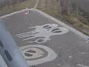 The "Aliens" stone arrangement at the Bottrop Tetrahedron was created by Fred Fischer, a resident of Bottrop, from 2004 to early 2009. He arranged different coloured gravel stones to create several large stereotypical representations of "aliens" below the tetrahedron. This independent design was part of a series of activities in which other IBA Emscher Park landmarks, such as the Brockenscheidt slag heap of the Waltrop colliery with the track tower by artist Jan Bormann, were also redesigned by citizens.