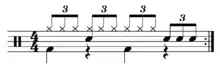 Drum pattern known as the "Texas three-step" due to its association with the dance step[1] Play