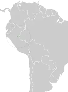 It is found in low-growing woodland. Its known range lies within the remote Serra do Divisor National Park in Brazil and the adjacent Sierra del Divisor National Park in Peru, but it is believed to be common there. Because of its apparently stable population, the International Union for Conservation of Nature has listed it as a species of least concern despite its relatively restricted range.[1]