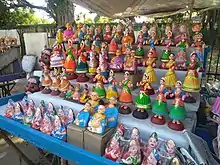 The Thanjavur doll is a type of traditional Indian bobblehead or roly-poly toy made of terracotta material. The centre of gravity and total weight of the doll is concentrated at its bottom-most point, generating a dance-like continuous movement with slow oscillations.[1] These toys are traditionally handmade, finished with detailed, painted exteriors. They have been recognized as a Geographical Indication by the Government of India as of 2008-09.[2]