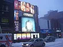 The Brass Rail is one of Toronto's downtown strip clubs. It is located on Yonge Street just south of Bloor. It is well known as a popular venue for celebrities, especially during the Toronto International Film Festival, which is based at the nearby luxury hotels of Yorkville.[1] Stars that have been observed there include Samuel L. Jackson,[2] Charlize Theron,[3] Alex Rodriguez,[4] and Colin Farrell.[5] The Brass Rail was one of the first venues Paul Shaffer worked in, serving as host and musician.[6]