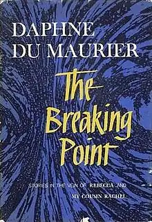 The Breaking Point is a collection of eight short stories by Daphne du Maurier first published in 1959 by Victor Gollancz in the UK and Doubleday in the US. It has also been published under the title The Blue Lenses and Other Stories. The stories were written at a time when du Maurier herself came close to a severe nervous breakdown and reflect her own psychological stress. Du Maurier herself acknowledged she had come close to madness immediately before she wrote them; and they were part of her cure – "the means by which she wrote herself back to sanity".[1] The original book had illustrations before each story by Margot Tomes.[2]