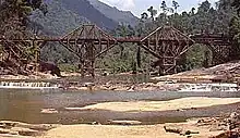 The bridge at Kitulgala, Sri Lanka, before the explosion seen in the film.