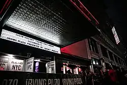 Ron Delsener took on management in the early 1990s. Live Nation, a spinoff of Clear Channel Communications, renovated and reopened Irving Plaza under the name "Fillmore New York At Irving Plaza" on April 11, 2007, reviving the name of the former Fillmore East in Manhattan's East Village, which had been open from 1968 to 1971.[14] However, in May 2010 Live Nation conceded that the new name had not caught on and due to "unrelenting demand" the name "Irving Plaza" would be restored as from June 23, 2010. A replica of the original marquee was commissioned.[15]
