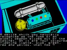 In this section, the player has discovered the location of the bomb. Using the information the player has gathered in the previous two parts, they must work out how to defuse the device. This part of the trilogy requires text input and plays differently depending on the version of the game.