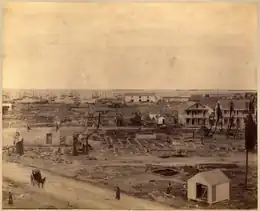 Since 1875, the city had a serious fire department, organized first by A. H. Dorsett.[4] However, at the time of the fire, the city's only steam fire engine had been sent to New York for repair. Firefighters were only able to use less effective measures like hand pumpers.[1]