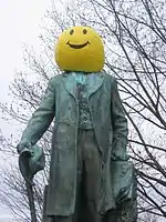 The Hangovers have released numerous albums over the years, the titles of which are all puns on drinking, or drinking-related themes.[9] As Michael Slon points out in his book Songs From The Hill, one album, Behind Bars, manages to achieve a quadruple-entendre: first, for the normal meaning of the phrase, meaning "incarcerated"; second, the reference to bars as drinking establishments; third, an allusion to bars as a period of music, and finally, as a reference to the striped rugby shirts the Hangovers wear at some performances.[12] In 1980, their original single titled "Facetime" received national recognition and earned mention in Yale's "Guide to Selective Colleges." The song was recently re-recorded on the album "Blackout" with another original song, "River to the Sea".