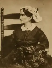 In August 1858, suffragist Elizabeth Cady Stanton was widely applauded in abolitionist newspapers for refusing Mary Morris Hamilton's invitation to serve as the lady manager for upstate New York. Stanton stated that she was "pledged to a higher and holier work than building monuments, or gathering up the sacred memories of the venerated dead."[7] Instead, she felt that actively working to abolish slavery in the United States was the "purest" tribute to Washington's memory.[7] Similarly, in November 1858, Elizabeth B. Chace declined an invitation to serve as a lady manager for Rhode Island, pointing out the irony of upholding the "moral value" of Mount Vernon as a symbol of America's fight for liberty, when one in six women in America remained subject to slavery.[7]