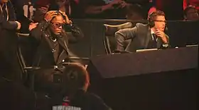 On the September 16 episode of Impact!, and the Reaction following it, Dinero seemingly turned heel by aligning himself with Kevin Nash and Sting, who had been feuding with Hulk Hogan, Eric Bischoff and Jeff Jarrett for months over the way TNA was run, claiming to know that they were up to something.[49][50] Dinero later claimed to have gotten inside information from Bischoff's secretary Miss Tessmacher, that would suggest that Sting and Nash were right.[51] At Bound for Glory Dinero, Sting and Nash faced Jeff Jarrett and Samoa Joe in a handicap match, after Hulk Hogan, who was scheduled to team with Jarrett and Joe, was forced to pull out due to a back surgery. At the end of the match Jarrett abandoned Joe and left him to be pinned by Nash. At the end of the event it was revealed that Sting and Nash had been right about Hogan and Bischoff all along, as they turned heel with Jarrett, Abyss and Jeff Hardy, and in the process turned Dinero, Sting and Nash back to being faces.[52]