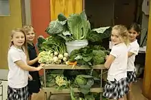 Students with vegetables from the organic garden