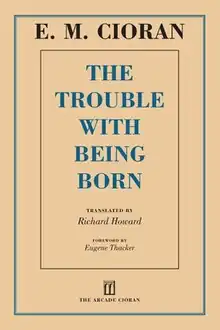 The Trouble with Being Born (French: De l'inconvénient d'être né) is a 1973 philosophy book by Romanian author Emil Cioran. The book is presented as a series of aphorisms, meditating primarily on the painful nature of being alive, and how this is connected to other subjects, such as God, metaphysical exile, and decay.[1] In 2020, The Trouble with Being Born became a Penguin Modern Classic.[2]