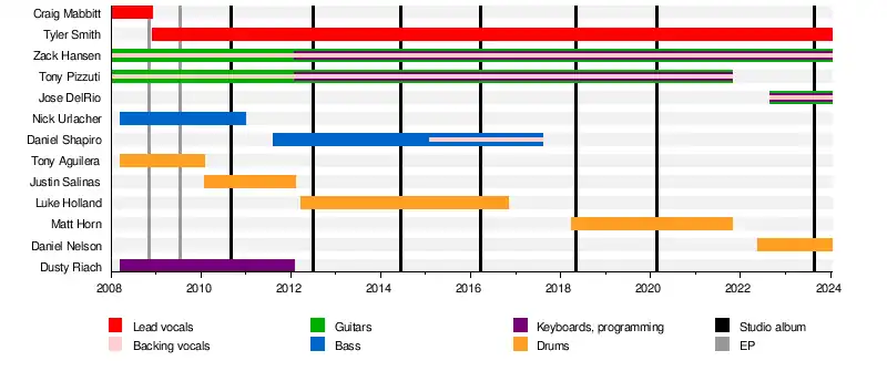The Word Alive was founded in 2008 by Craig Mabbitt (lead vocals) with Zack Hansen (guitar) and Tony Pizzuti (guitar) who were former members of the bands Clouds Take Shape and Calling of Syrens.[4][5] As a side-project of Mabbitt during his part in Escape the Fate, the remaining required members he recruited to start The Word Alive were chosen to be Nick Urlacher (bass guitar), Dusty Riach (keyboards) and Tony Aguilera (drums). The group recorded songs with the intention of releasing them as a self-titled EP, never being officially released but leaked to P2P networks such as Soulseek. Later on, the band forced Mabbitt to leave due to their dissatisfaction with Escape the Fate's schedules, which required Mabbitt to work as a full-time member.[6]