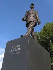 A statue of De Gaulle stands facing Rondo de Gaulle'a in Warsaw, Poland. It is identical to the one near Champs-Élysées – Clemenceau and the Élysée Palace, in Paris.