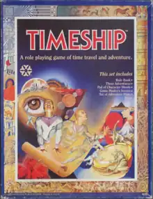 Timeship is a time-travel role-playing system with very general rules.[1] Unlike other roleplaying games where the players create fictional characters, in Timeship, players role-play themselves as they are teleported by a powerful ritual in an ancient scroll into the past or the future.[2] At a time when role-playing game systems were becoming increasingly complex, Timeship was an attempt to simplify and streamline the rules.[2] The entire rules system takes jup only ten pages in a 48-page booklet.[3]
