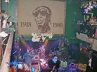 In the early years, it had a juice bar, restaurant, and a bar. The only remnant of the juice bar is the banana in Tipitina's logo.[1] In the early 1980s, the studios of radio station WWOZ were located in one of the apartments upstairs from the club. During that time, WWOZ would occasionally carry a Tipitina's show live by literally lowering a microphone into the club through a hole in the floor.[3] Tipitina's closed for a time during the 1984 World's Fair, when much of the local music scene was drawn to venues in and around the Fair. The building was then remodeled to remove the upstairs apartments in favor of a higher ceiling in the downstairs music venue and reopened.