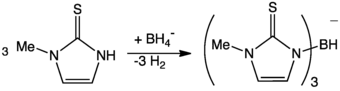 - ↑ Mark D. Spicer, John Reglinski "Soft Scorpionate Ligands Based on Imidazole-2-thione Donors" European Journal of Inorganic Chemistry 2009, Issue 12, pp 1553–1574. doi:10.1002/ejic.200801240