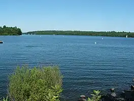 Lake Nockamixon is the most visited spot along the creek's course. Boating is the most popular activity, and its main marina holds dozens of sail boats, and rents out smaller boats to visitors, too. Fishing is also a popular activity, and a fishing pier has been set up of the shore of the lake. Visitors can also hike or bike ride around the area, hunt in certain areas, and even camp if planning to stay for more than one day. When high-water conditions exist, normally in early March and late November, the dam at Lake Nockamixon releases surges of water for one day every few months. This turns Tohickon Creek into a whitewater course,[6] and boaters can manage their ways the entire route from the lake to the Delaware River.
