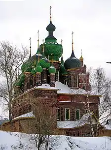 St. John the Baptist Church (Russian: Церковь Иоанна Предтечи) in Yaroslavl is considered to be the acme of the Yaroslavl school of architecture. It was built during 1671–1687 on the bank of Kotorosl river in the Tolchkovo sloboda (district) which at that time was the largest and wealthiest part of the town.
