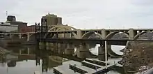 In 1919, Beaver Wade Day (1884–1931) joined the firm, and it was renamed to Toltz, King and Day.[2][4] The firm designed the Stearns County Courthouse in St. Cloud, Minnesota in 1920 and provided structural engineering services for the Saint Paul Union Depot in 1923. In 1926, they completed the design of the Robert Street Bridge spanning the Mississippi River in St. Paul. The bridge, a rainbow arch design, had several challenges that resulted in its unusual form. The bridge had to reach Kellogg Boulevard at street level at the top of the bluff, while providing enough clearance underneath for the raised platform at the Saint Paul Union Depot, the Chicago Great Western lift bridge, and the passage of riverboats on the river. The bridge was rebuilt in 1989 by the same firm, now known as TKDA.[5]