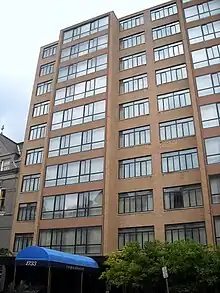 Constructed as an apartment building in 1964,[4] the structure was converted to a hotel in 1979, opening as the Canterbury Hotel.[5] It was purchased in March 2001 for $10.5 million by LaSalle Hotel Properties of Bethesda, Maryland. It reopened in October 2001 as the 99-room Kimpton Topaz Hotel, the first Kimpton-managed boutique hotel on the East Coast.[6][7] The Kimpton Topaz Hotel closed on November 25, 2019, after being acquired by Douglas Development for $33.1 million.[8] It reopened in November 2021 as the 143-room Courtyard Washington, DC Dupont Circle .[9]
