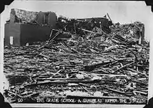 Towards the end of May, 46 tornadoes touched down in an intense two-day outbreak across the Great Plains and Arkansas. On May 25, a large, long-tracked, 1100-yard wide F4 tornado passed west of Aberdeen, Texas before moving into Oklahoma, turning northeast and striking the north side of Sweetwater, killing two and injuring 18. Later, a large, .25 mile wide F3 tornado hit Deer Creek, Oklahoma, injuring one. Soon afterwards, the most violent tornadoes of the year occurred as two large F5 tornadoes touched down within 34 minutes of each other. The first F5 tornado was 500 yards wide and struck the towns of Blackwell, Oklahoma and South Haven, Kansas, killing 20 and injuring 280 on its 28.4 mile path. After that, an even larger, longer-tracked, and deadlier F5 tornado touched down near Peckham, Oklahoma and moved into Kansas. It grew to 1320 yards wide and hit the towns of Ashton, Oxford, Udall, Rock, and Atlanta, killing 80 and injuring 273 along its 56.4 mile path. The 100 deaths accounted for about 77.5% of the fatalities in 1955.[1]