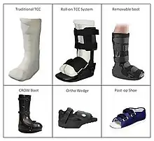 - ↑ Caravaggi, C., et al., Effectiveness and safety of a nonremovable fiberglass off-bearing cast versus a therapeutic shoe in the treatment of neuropathic foot ulcers: a randomized study. Diabetes Care, 2000. 23(12): p. 1746-51.